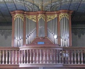 Heutige Orgel von Peter Ebell, Kappel a.A. (2 Manuale, 15 Register, erbaut 1982).